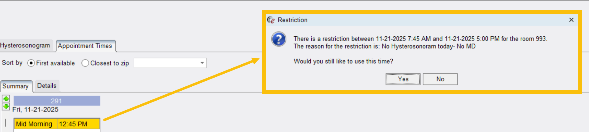 - When a slot appears yellow in eRAD, please be sure to fully read and acknowledge any exam warnings or restrictions before proceeding.